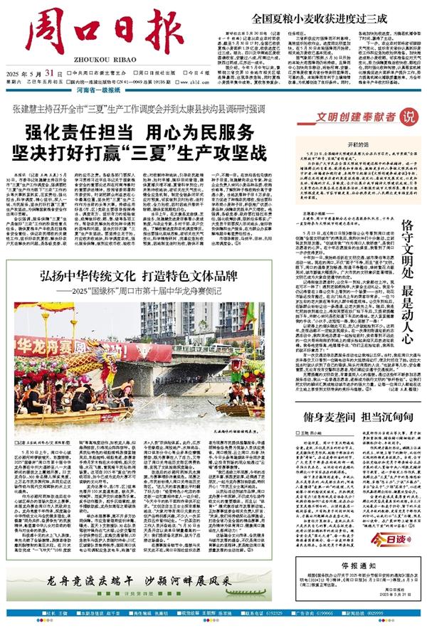 本报讯 (记者 王艳 王晨) 5月30日,市委书记张建慧主持召开全市“三夏”生产工作调度会,强调要把“三夏”生产作为眼下“三农”工作的头等大事抓紧抓实,压实责任、强化担当,科学调度、精心组织,深入一线、为民服务,坚决打好打赢“三夏”生产攻坚战,为保障国家粮食安全作出周口贡献。