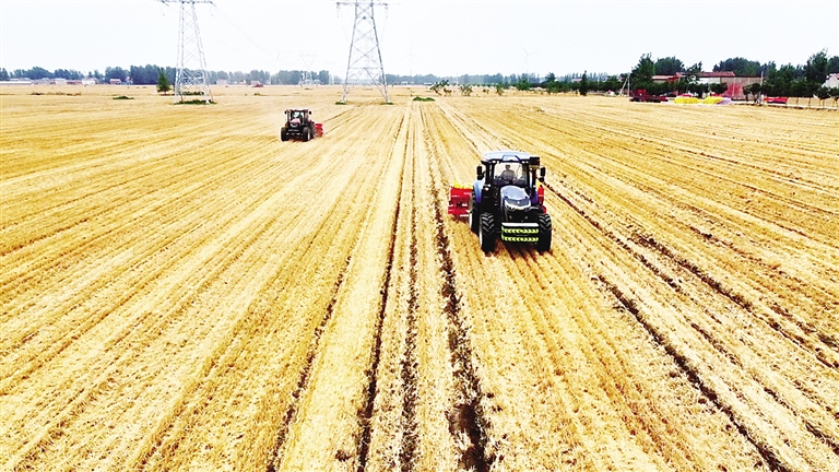 麦收过后,抢种秋粮。大型免耕施肥一体播种机能精准把控播种深度与施肥量,可大幅提升作业效率,成为抢种“主力”。我市各地农民熟练操作机器,在田间有序作业,不遗漏任何可耕种的土地,争分夺秒抢种,播撒丰收希望。图为6月2日,在郸城县秋渠乡广袤田野里,免耕施肥一体播种机正在进行玉米播种作业。
