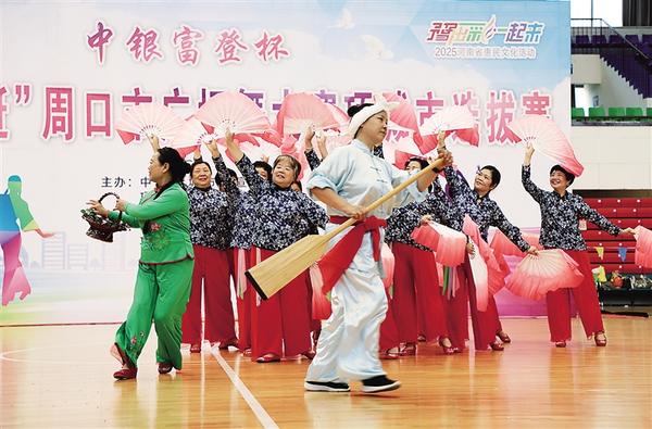 5月30日,项城市举办“中银富登杯”2025年周口市“中原舞翩跹”广场舞大赛选拔赛。经过激烈比拼,项城市智慧乐坊舞蹈队和项城市滨河舞蹈队从52支参赛队伍中脱颖而出,将代表项城市参加周口市广场舞大赛。图为参赛队伍正在表演。 记者 张志新 通讯员 张永久 摄