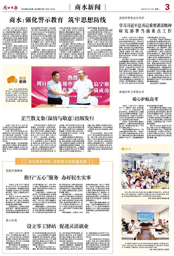 本报讯 (记者 马治卫 通讯员 刘永健) 近日,商水县县长沈宗祥主持召开县政府常务会议,传达学习习近平总书记在河南考察时的重要讲话精神,研究部署耕地保护、高考保障、经济技术开发区建设规划实施、经济运行等当前重点工作。县领导金溪、王建党、王申、李锋、王宾、潘子建、董志伟,经济技术开发区管委会主任朱宏伟,相关部门主要负责人出席会议。