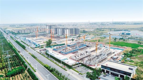 近年来,我市全力推动项目建设提速提质提效,持续完善城市功能,充分发挥中医药治未病特色优势,在康养与中医药融合发展领域取得了令人瞩目的成绩。图为鸟瞰位于市城乡一体化示范区的周口城投康养瑞府项目建设工地。