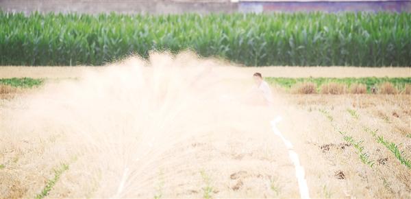 近期,周口市持续高温,进入“炙烤”模式。烈日下,农田水分加速流失,部分地块已出现旱情。面对严峻形势,我市各地农户密切关注天气变化,迅速行动,利用喷灌、滴灌等多种方式,及时为玉米田“解渴”。图为6月10日,淮阳区王店街道王楼村村民在田间忙碌地灌溉。
