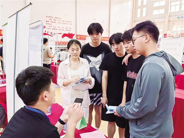 6月13日上午,“逐梦今夏,职等你来”毕业生校园双选会暨“宏志助航计划”招聘会在周口职业技术学院开元校区举办。图为招聘会现场,求职学生与用人单位在交流。 记者 王吉城 刘华志 摄