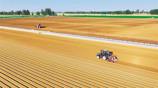 6月15日,扶沟县西关高效农业示范区正在播种花生。该园区集育种、品种展示等功能于一体,把农业技术推广和利用转化为群众致富的有效途径。 黄金峰 摄