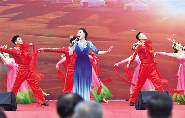 6月15日,在位于新疆霍尔果斯市第六代国门的演出现场,女高音歌唱家吕薇演唱歌曲《中国红》。