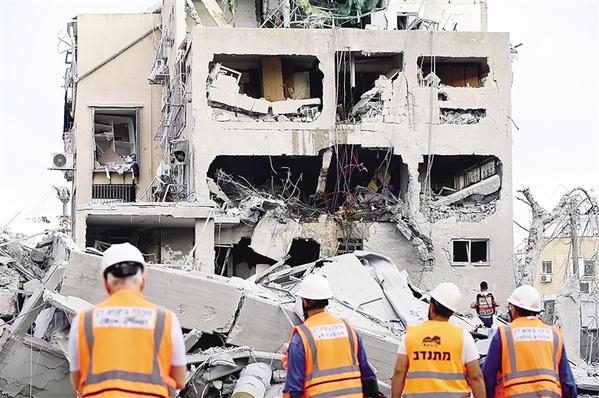 6月16日,在以色列布内布拉克,应急和救援人员在一处导弹袭击现场开展工作。