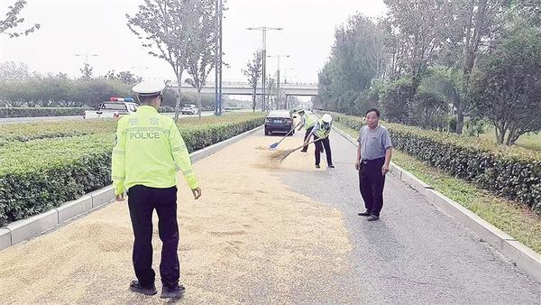 “大爷,可不能在路中间晒粮,太危险了!”6月5日,烈日当空,周口市川汇区李埠口街道下楼行政村村民李老汉将收下来的小麦摊晒在公路中间,周口市公安局交警支队四大队副大队长顾松伟和同事在巡逻中发现后,立刻上前劝阻,并向李老汉讲解在马路上晒粮的危害性。李老汉不以为然地说:“就晒一会儿,没事的。”顾松伟没有急于反驳,而是打开手机,向李老汉展示了一段因在马路上晒粮导致摩托车侧滑、人员受伤的监控视频。视频中,骑手因避让麦粒失控摔倒,现场触目惊心。李老汉看完视频,一边在民警的帮助下将麦粒收拢到路边,一边说:“没想到在马路上晒粮的后果这么严重,多亏你们提醒我!”