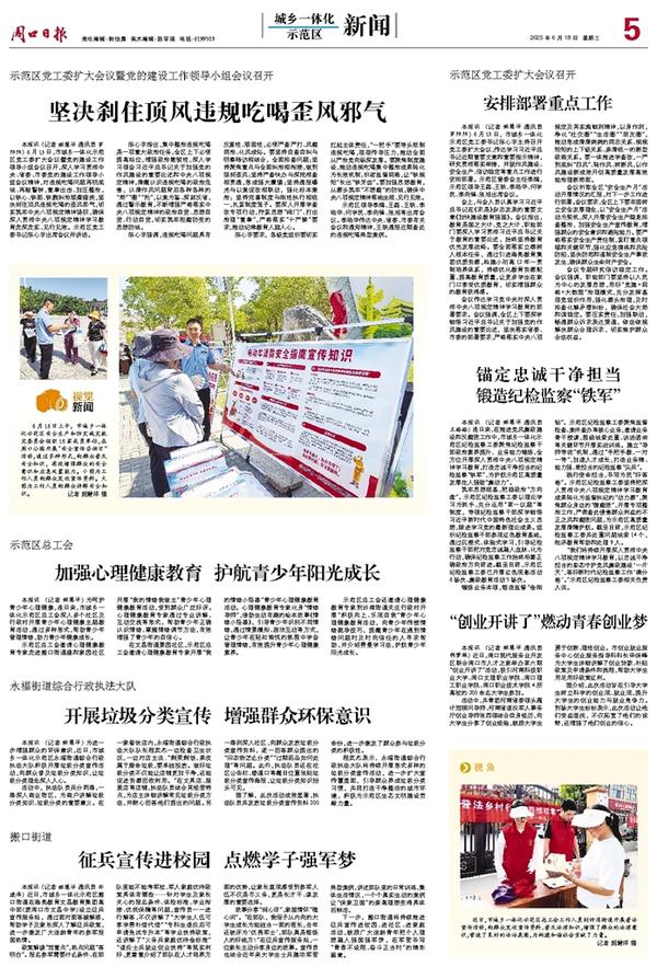 本报讯 (记者 姬慧洋 通讯员 罗阳阳) 6月13日,市城乡一体化示范区党工委扩大会议暨党的建设工作领导小组会议召开,深入学习贯彻中央、省委、市委党的建设工作领导小组会议精神,对违规吃喝问题再明底线、再敲警钟,重拳出击、加压整治,以铁心、铁面、铁腕纠治顽瘴痼疾,坚决刹住顶风违规吃喝的歪风邪气,切实筑牢中央八项规定精神堤坝,确保深入贯彻中央八项规定精神学习教育走深走实、见行见效。示范区党工委书记陈心宇出席会议并讲话。