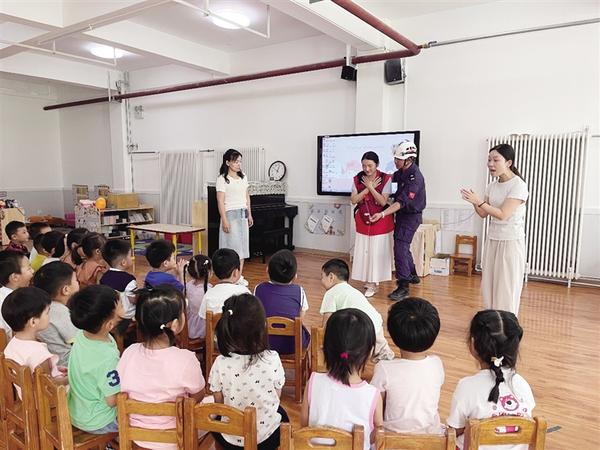 6月17日,市应急管理局组织社会救援队队员和志愿者到文昌幼儿园为师生讲解急救常识。