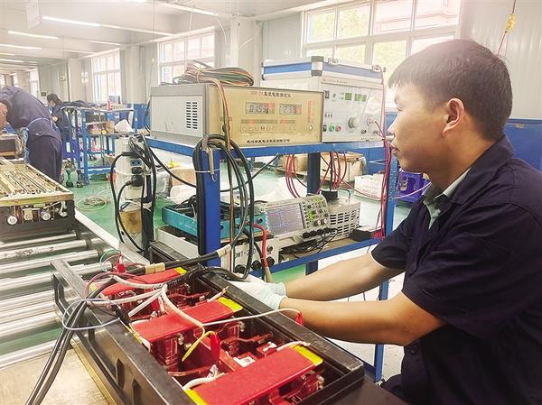 6月24日,在北京博瑞莱智能科技周口有限公司生产车间,工人忙着检测调容调压开关。该公司高度重视科技创新,经过多年的技术攻关,研发出调容调压开关这一专利产品,先后获得河南省科技进步奖一等奖、国家科技进步奖二等奖、日内瓦国际发明展金奖。正常变压器安装这种开关,最高能节约30%的用电量。