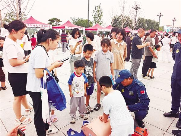 本报讯(记者 侯俊豫 通讯员 薛锋 文/图) 6月21日晚,在淮阳伏羲文化广场,一个别样的“急救地摊”吸引大家的目光,为广大群众送上救命技能“大餐”。