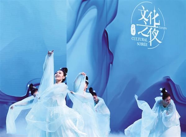 6月25日晚,第十六届夏季达沃斯论坛文化之夜在国家会展中心(天津)举行,参会嘉宾伴随着舞台上中西交融的文艺演出,品尝天津地方美食,感受中国传统文化魅力。 新华社记者 孙凡越 摄