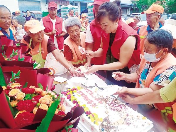 当天是党的生日,也是环卫工人老杨的生日。为了让老人过一个有意义的生日,感受到大家庭的温暖,大伙儿一早就忙碌了起来。