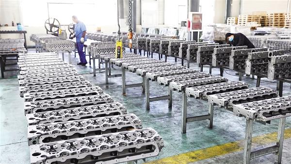 7月2日,在周口隆昌汽车配件有限公司车间,工人在生产加工汽车零配件。该公司年产缸体、缸盖10万只,主要销往北美、欧洲、中东等国际市场,年产值8000余万元,带动扶沟县发动机零部件行业发展,形成产业集群效应。