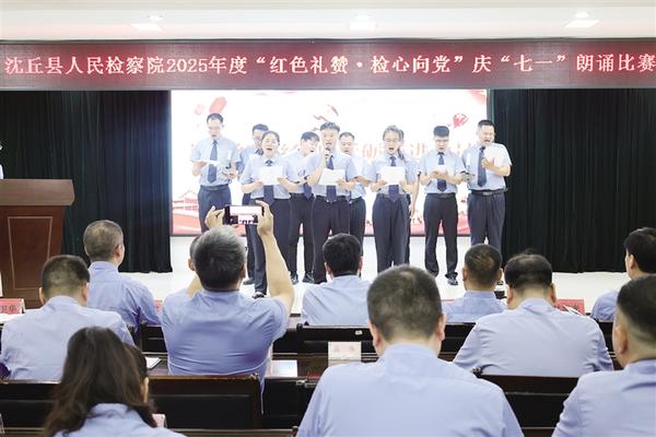 为庆祝中国共产党成立104周年,6月30日,沈丘县人民检察院举办“红色礼赞·检心向党”庆“七一”朗诵比赛。 图为参赛干警合唱《歌唱祖国》。 通讯员 胡新建 耿华 摄