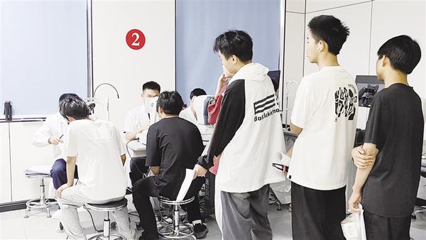 暑期来临,不少青少年到周口市眼科医院(周口市第七人民医院)进行视力检查。在该院检查区,医护人员仔细为青少年检查视力情况,力求做到预防在前。记者 田亚楠 摄