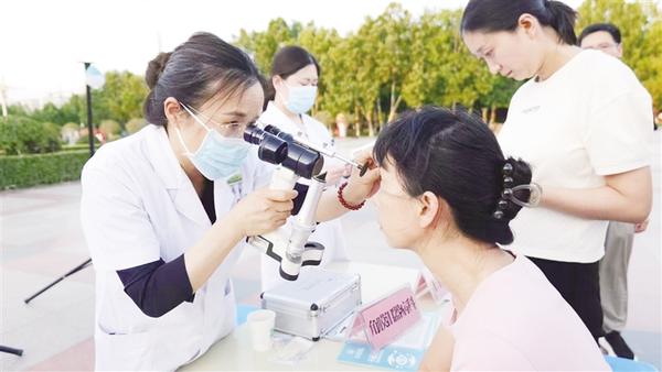 在活动现场,周口市眼科医院(周口市第七人民医院)医护人员借助专业设备,为市民提供细致的视力检查、眼底筛查等服务,并耐心解答市民关于近视防控、白内障、青光眼等常见眼病的咨询。一位前来检查眼睛的市民表示:“没想到晚上散步时也能享受到专业的眼科检查,真是太方便了。”