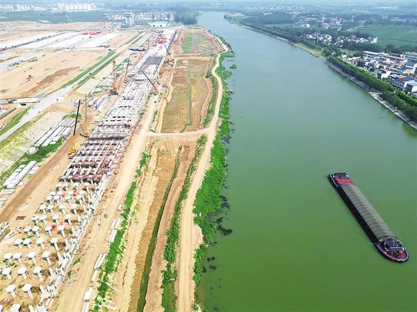 7月8日上午,周口中心港小集作业区建设工地一片繁忙景象。据了解,周口中心港小集作业区一期工程正在稳步推进,4—6号泊位将于8月底完工。