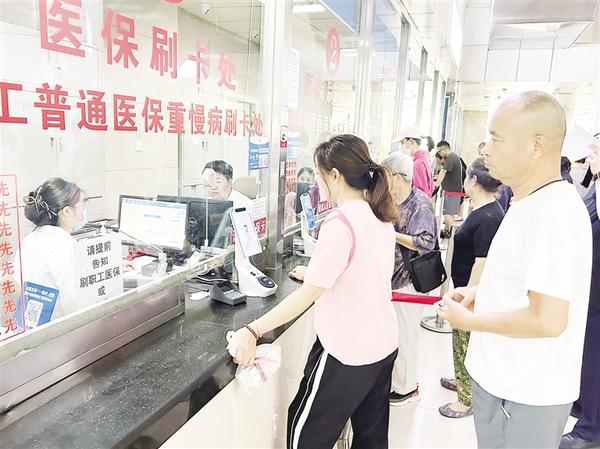 7月8日,在周口市中医院,参保群众通过医保终端设备“刷脸”完成医保结算支付。