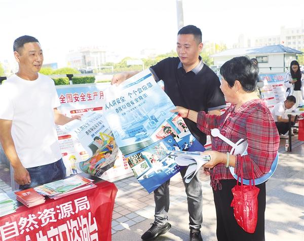 近日,太康县自然资源局工作人员走上街头,向群众宣传安全生产、防灾减灾等知识,提醒大家注意防范身边的安全隐患。 记者 张洪涛 通讯员王立平 摄