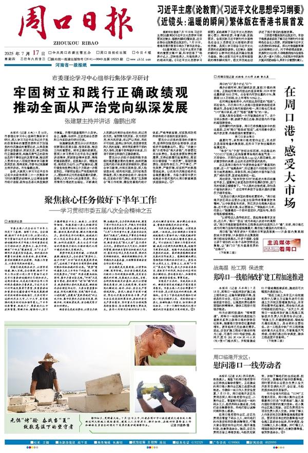 要充分认识党的领导的关键作用,坚持和加强党的全面领导,促进经济平稳健康运行。要以“关键少数”示范带动“绝大多数”,市委要扛牢主体责任,各级党委要知责担责履责,支持纪委履行监督责任,落实好分管领域“一岗双责”, 层层明确责任、层层传导压力,严于律己、严负其责、严管所辖,切实把严的氛围营造起来,以优良作风推动经济社会高质量发展,为奋力谱写中原大地推进中国式现代化周口新篇章提供坚强保证。①7