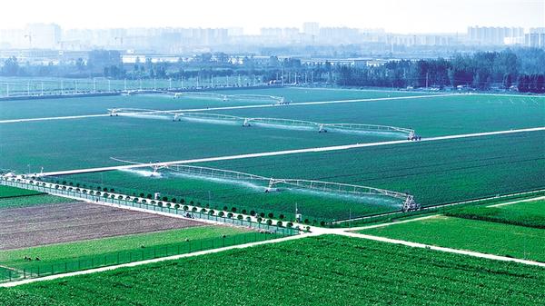 7月18日,在扶沟县城郊乡高标准农田里,大型移动灌溉设备正在为农作物浇水。日前,扶沟县掀起了以抗旱浇水、除草施肥、病虫害防治为主的农作物夏管工作,为秋粮丰收奠定坚实基础。
