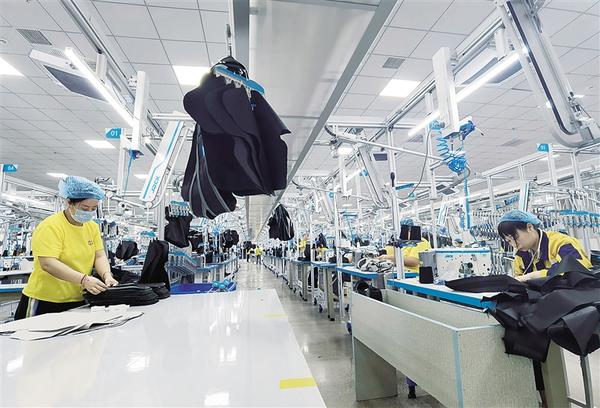 位于商水县的河南升笑纺织年产1000万件(套)家纺项目,总投资1.85亿元。目前,该项目一期已建成投产。项目满产达效后,年产值达1.6亿元以上,年创税收达400万元以上,提供就业岗位300余个。图为工人在生产线上忙碌。