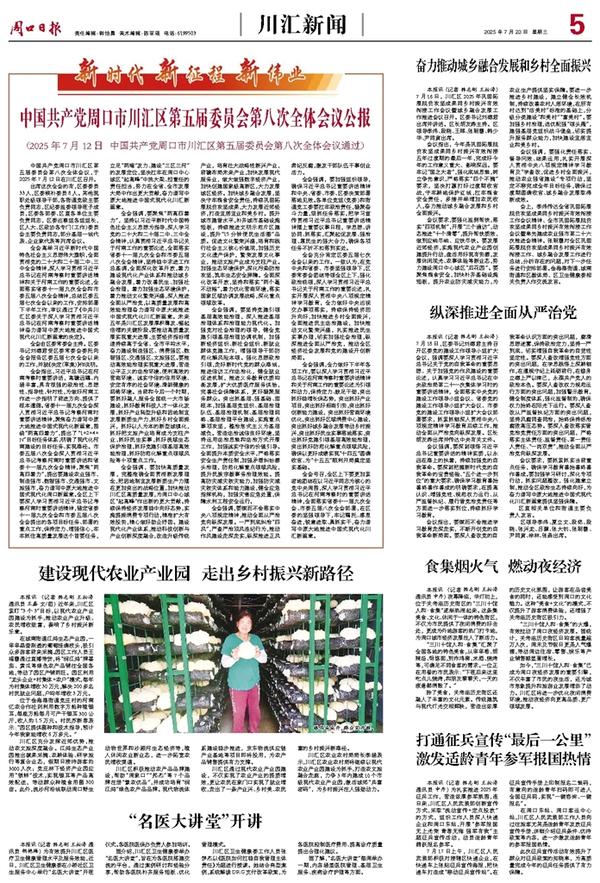 中国共产党周口市川汇区第五届委员会第八次全体会议,于2025年7月12日在川汇区召开。