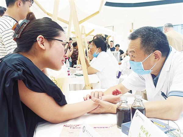 7月20日,由周口市中医院主办的“中医药文化集市”活动在周口中心城区文昌万达广场举行,让市民在休闲购物时感受中医药文化魅力。图为活动现场。