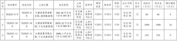 TK2025-9号地块拍卖报价时间:2025年8月20日9时30分。TK2025-10号地块拍卖报价时间:2025年8月20日9时40分。TK2025-11号地块拍卖报价时间:2025年8月20日9时50分。拍卖网站:周口市公共资源交易中心网站(网址:http://jyzx.zhoukou.gov.cn)。