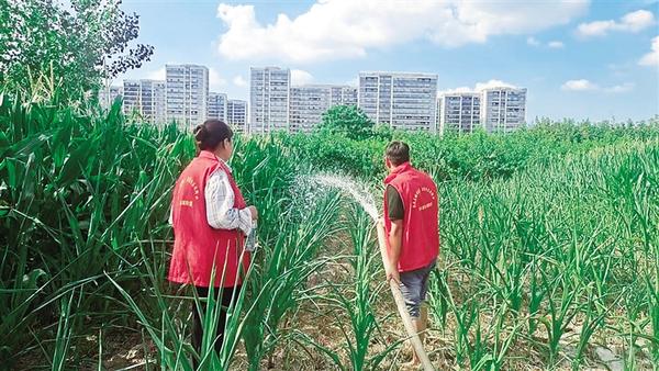 图②:7月29日,商水县东城街道全体干部下沉一线,协助农户铺设水管、调度水源,坚决打赢这场抗旱保秋硬仗。 记者 马治卫 摄