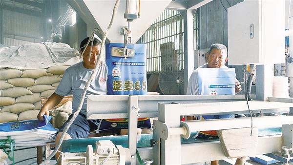 连日来,地神种业的仓库大门敞开,阳光透过门窗洒在麦种上,工人有条不紊地打包麦种,为满足群众秋播需求做好准备。 记者 张猛 孙靖 摄