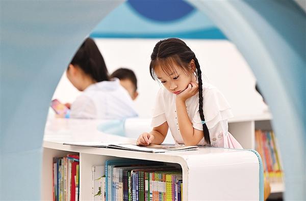 8月3日,小朋友在位于海口市的海南省图书馆读书。