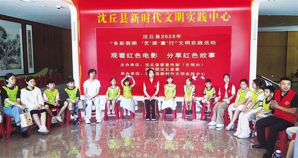 本报讯( 记者 高洪驰 文/图) “今天,在县新时代文明实践中心与这么多小朋友一起观看红色电影、分享红色故事,我很受教育,也很开心。以后再有这样的活动,我还要参加。”活动当日,沈丘县三里井小学四年级学生宋晨曦高兴地说。近日,沈丘县在新时代文明实践中心举行2025年“多彩假期‘艺’路‘童’行”文明实践活动。