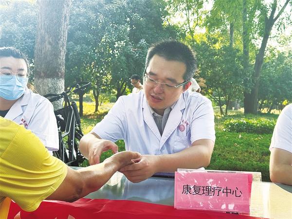 8月3日,周口市中医院的专业医护团队走进周口公园,携手跑团开展义诊活动,为参与活动的跑友和周边市民提供体质辨识、运动损伤咨询等服务。 记者 李鹤 摄