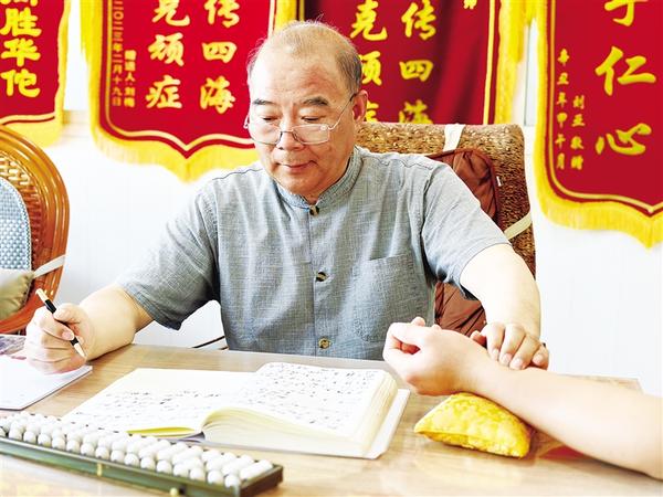 谈及中医传承,刘喜元眼中满是敬畏与责任。诊所里,他的儿子正作为第五代传人跟随他学习。“老方子得结合临床实践不断改进,才能越用越灵。”刘喜元说。