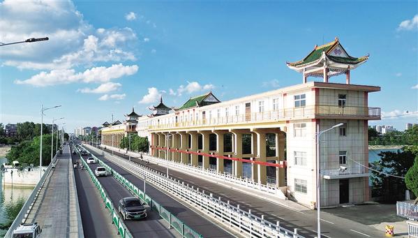 8月23日下午的周口大闸在蓝天白云的映衬下格外雄伟壮观。 作为周口地标性水利工程,周口大闸承载了几代人的记忆,全称为周口枢纽工程沙河拦河闸,始建于1959年10月,至1975年9月建成,由浅孔闸、深孔闸及4层办公楼组成。 记者 梁照曾 摄