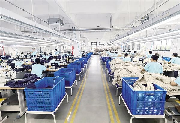 位于项城市的江苏华瑞年产300万件服装服饰基地项目,总投资约1.43亿元,主要建设标准化厂房、物流仓储、科技研发楼等配套设施,年产各类服装服饰300万件。目前,该项目已建成投产。项目投产达效后,可实现年税收2000万元,提供就业岗位700个。图为工人正在加工订单产品。