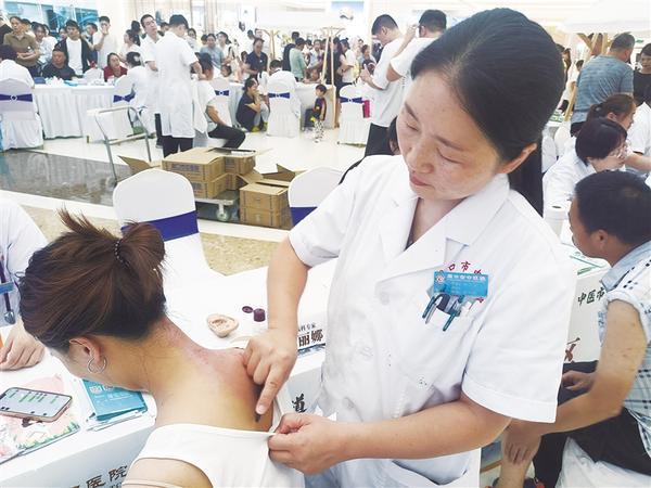 8月24日,周口市中医院“中医集市”再次走进市城乡一体化示范区文昌万达广场,为市民提供健康养生服务。 记者 李鹤 摄