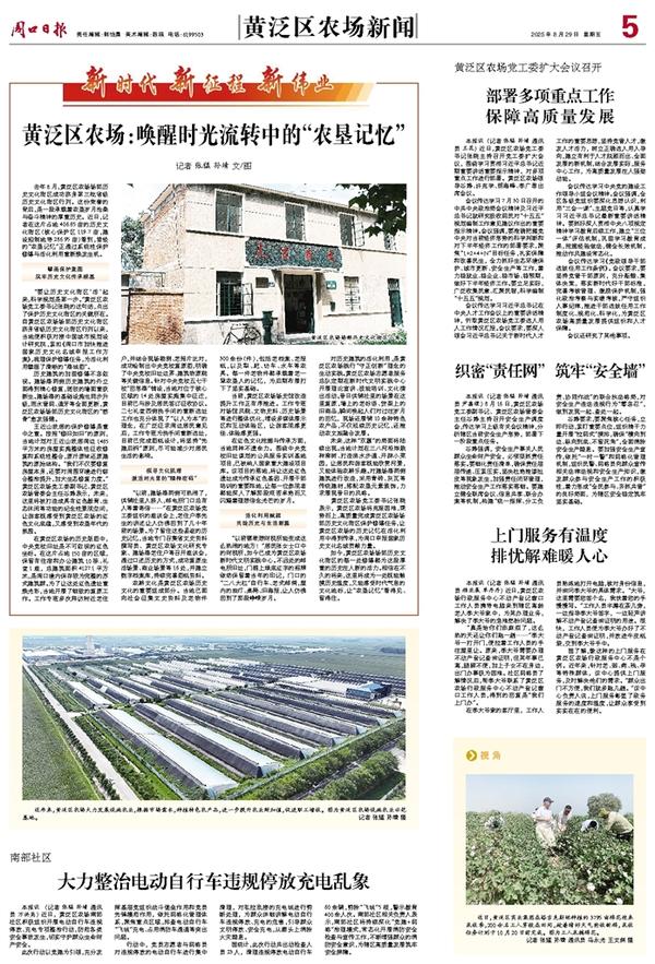 本报讯 (记者 张猛 孙靖 通讯员 万洪亮) 近日,黄泛区农场南部社区积极组织开展电动自行车违规停放、充电专项整治行动,防范各类安全事故发生,切实守护群众生命财产安全。