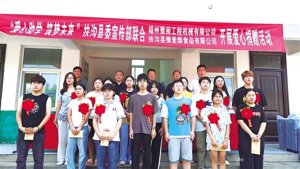 8月27日,扶沟县委宣传部驻村工作队联合爱心企业在该县江村镇张庞小学开展爱心助学活动,为13名考上大学的学子发放助学金等约15000元,以实际行动助力学子圆梦。 记者 金月全 摄