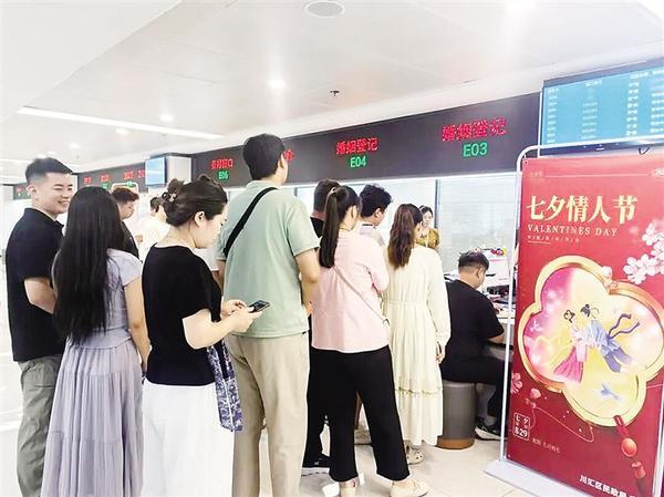 当日9时许,川汇区民政局婚姻登记处暖意融融,爱意满满。一对对新人手挽着手,满怀期待地等待办理结婚登记,眼中满是对未来的憧憬。“七夕节是专属于我们中国人的‘情人节’。”刚刚领到结婚证的市民贾云云幸福地表示,“我们特意选择七夕节来登记,就是希望我们的感情能像牛郎织女一样坚定而永恒。”