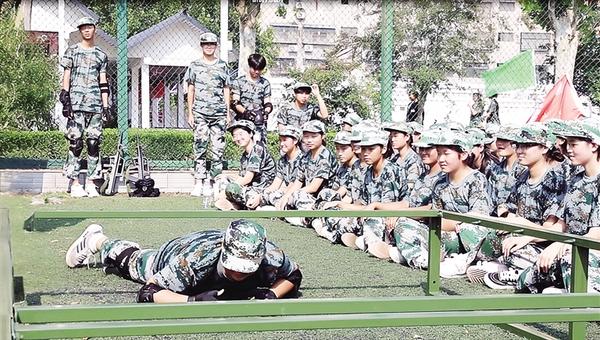 为深入贯彻落实教育部关于国防教育的部署要求,近日,在鹿邑县人民武装部的指导下,伯阳中学与第三高级中学积极开展新生军事训练,引导学生厚植家国情怀,增强纪律意识、集体观念。图为训练现场。