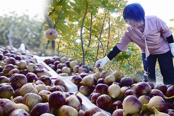 金秋时节,淮阳区王店街道黄连村的无花果种植基地迎来丰收。 图为9月5日,果农们娴熟地采摘着饱满润泽的无花果,脸上洋溢着丰收的喜悦。记者 刘俊涛 摄