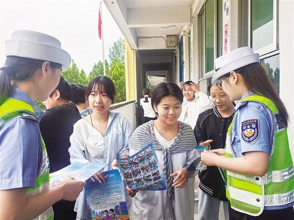 为进一步增强学生的交通安全意识,连日来,商水交警深入辖区多所学校,开展形式多样的交通安全宣讲活动,生动的讲解让广大学生深刻认识到遵守交通安全法律法规的重要性。图为交警向学生发放宣传资料。 记者 马治卫 通讯员 安俊超 摄