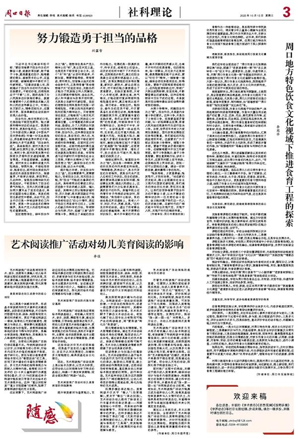 对周口地域饮食文化进行课程化转化,既是对周口文化基因的传承,也是构建中原、中国特色食育体系的有益探索。站在新起点,踏上新征程,我们将接续努力,进一步关注课程标准化建设与数字化资源开发,力争为周口市食育工程建设增力添智。