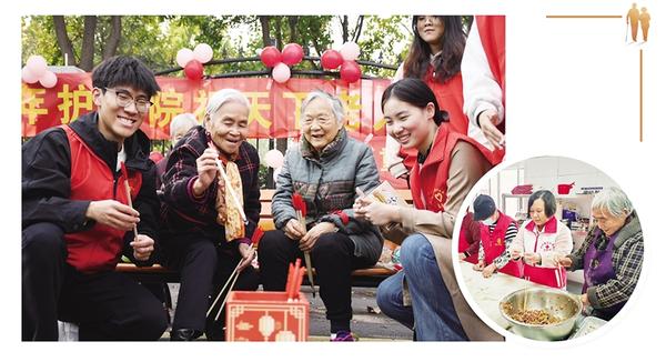 10月29日,河南科技职业大学志愿者前往周口市老年护理院开展“情暖重阳 艺伴夕阳”志愿服务活动。记者 邱一帆 摄