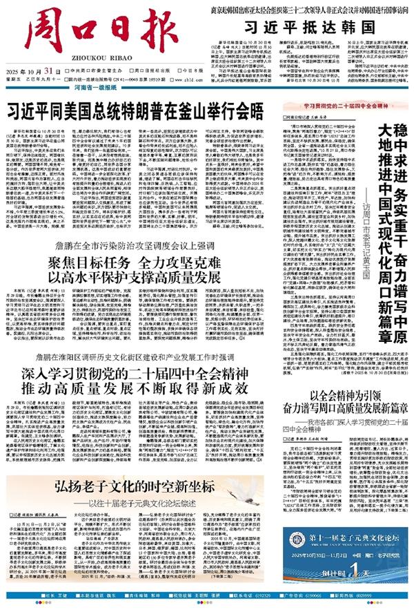 詹鹏强调,各级各部门要切实把思想和行动统一到全会精神上来,聚焦“两高四着力”,锚定“1+2+4+N”目标任务体系,落实市委“16232”总体工作思路 ,攻坚克难、加压奋进,全力以赴稳就业、稳企业、稳市场、稳预期,确保圆满完成全年经济社会发展目标任务。要围绕加快构建现代化产业体系,切实抓好产业高质量发展,坚持智能化、绿色化、融合化方向,加快传统产业“智改数转”,着力打造新兴支柱产业,推动文旅产业突破性发展,不断塑造现代化产业体系新优势。要加快农业农村现代化建设,加大保障和改善民生力度,更好统筹发展和安全,确保“十四五”顺利收官、“十五五”良好开局,推动周口高质量发展和高效能治理不断开创新局面。①6