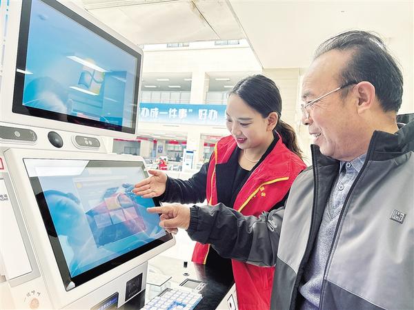 10月27日上午,扶沟县政务大厅的帮办员在协助老年群众办理业务。为进一步解决老年群体在办事过程中遇到的难题,扶沟县行政审批和政务信息管理局着力构建全链条适老服务体系,在自助服务区配备专职辅导员,“手把手”指导老年人操作自助机、使用政务APP查询社保缴费、医保报销等事项,让老年群体在政务服务中感受到便利与温暖。记者 刘俊涛 通讯员 纪俊辉 摄