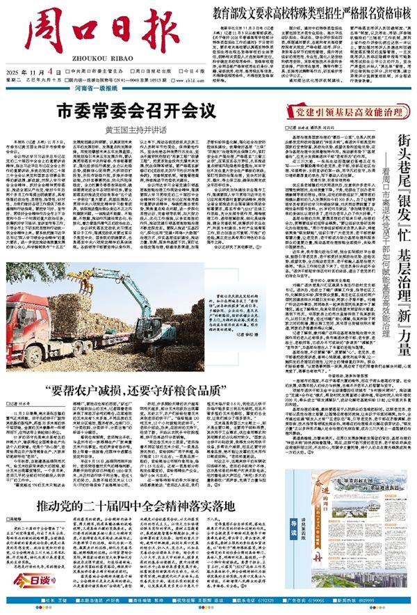 2025-11-04 1 1 周口日报 content_284880.html 1 “要帮农户减损,还要守好粮食品质” /enpproperty-->
